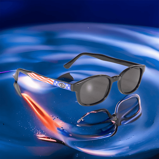 KD's 20050 zonnebril met gerookte glazen en versiering van Amerikaanse vlag
