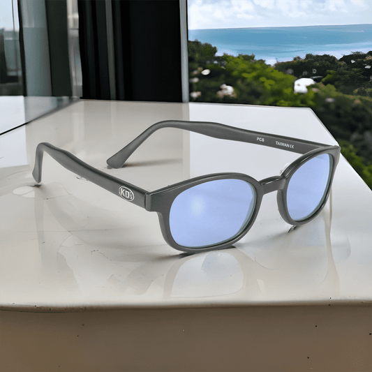 KD's 20012 zonnebril met blauwe glazen en matzwart montuur