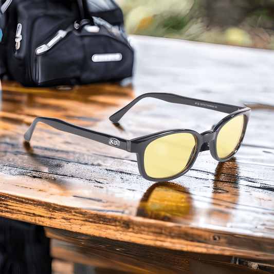 X-KD's 10112 zonnebril met zwart montuur en gele glazen