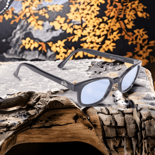 X-KD's 1012 zonnebril met zwart montuur en lichtblauwe glazen