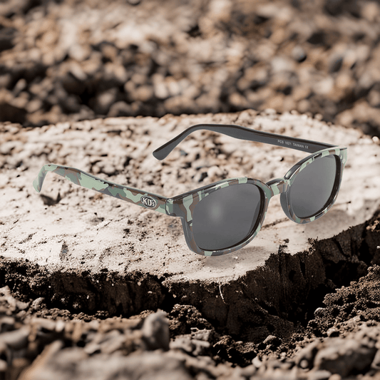 X-KD's 1021 zonnebril met camouflagemontuur en grijze glazen